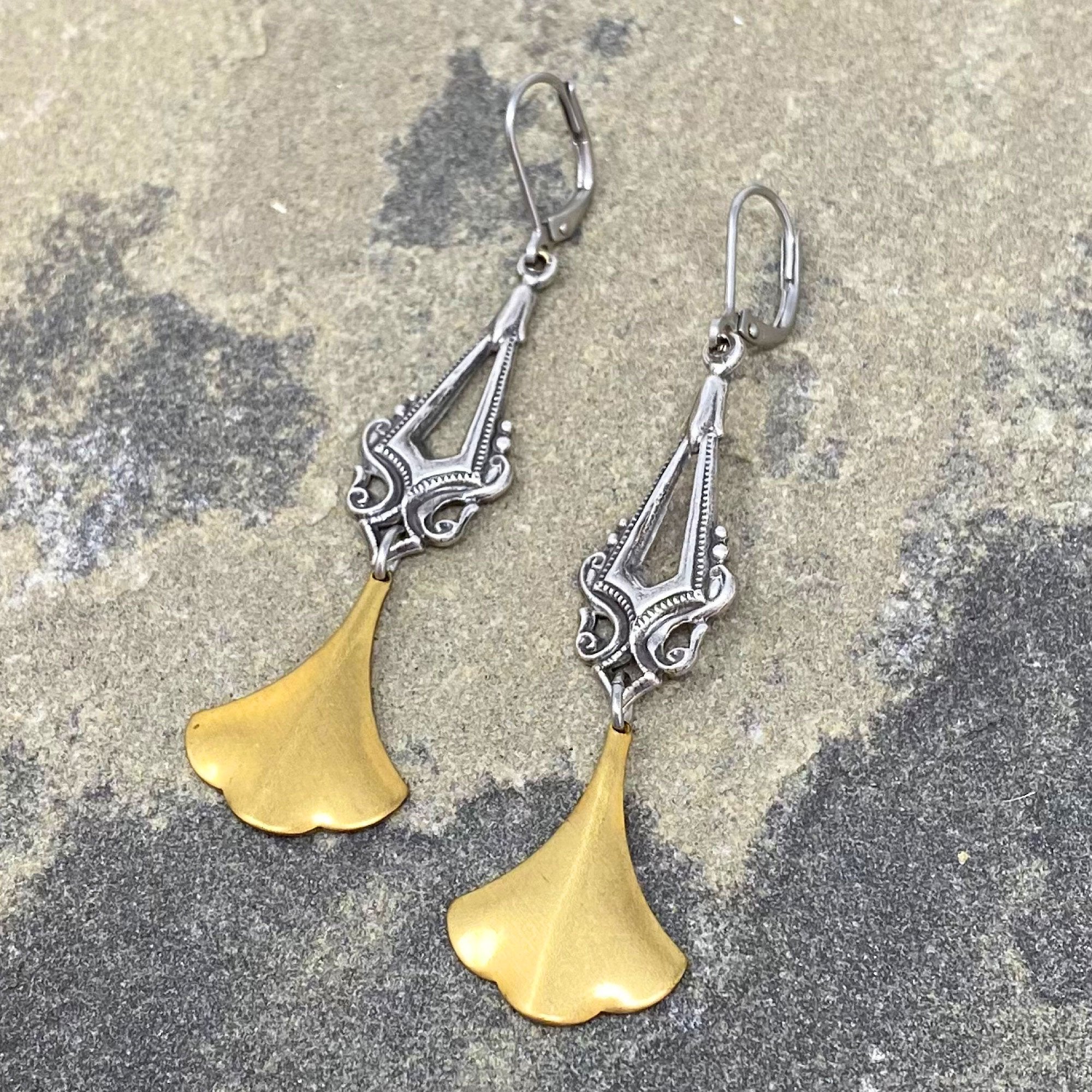 • Art Nouveau inspired oxidized silver drops