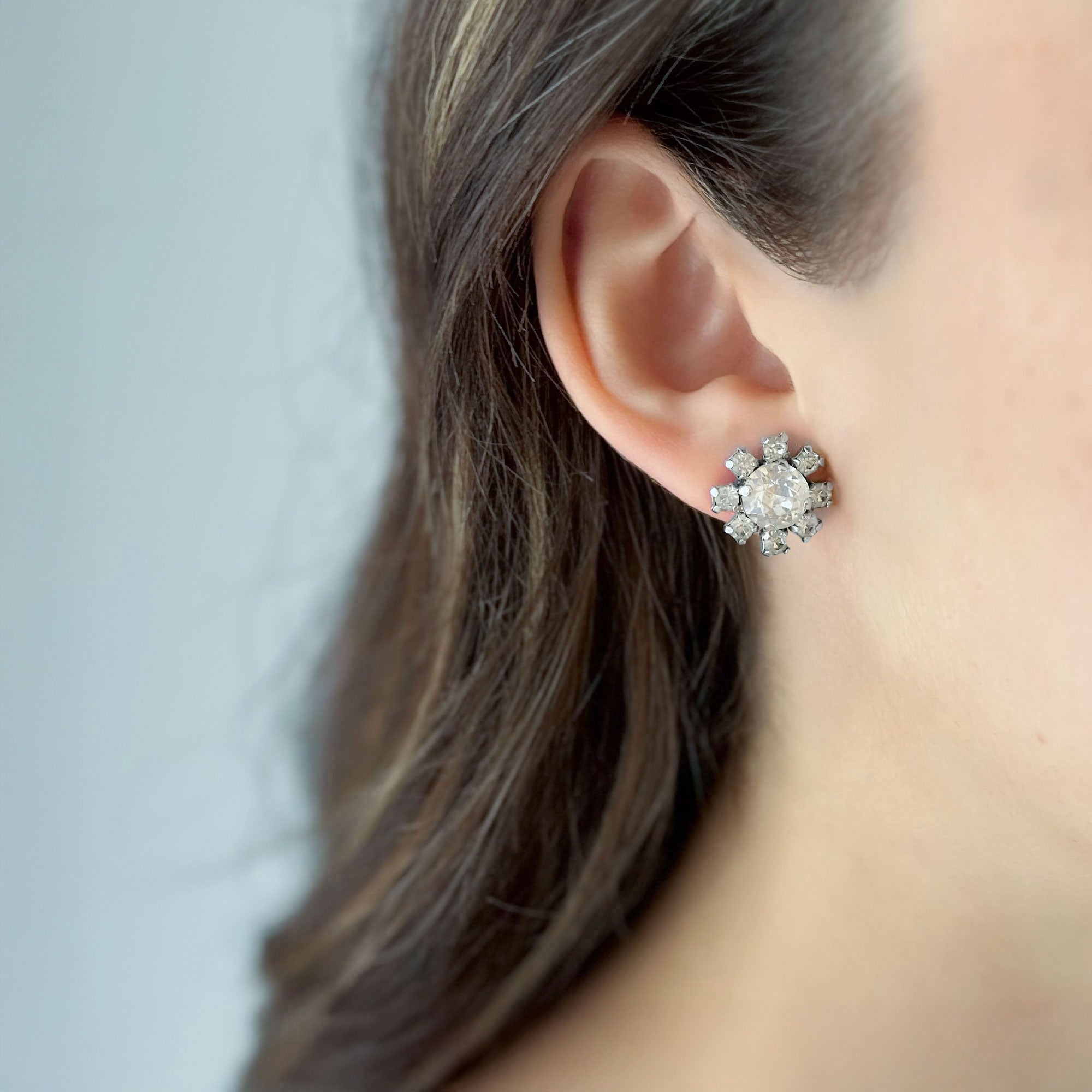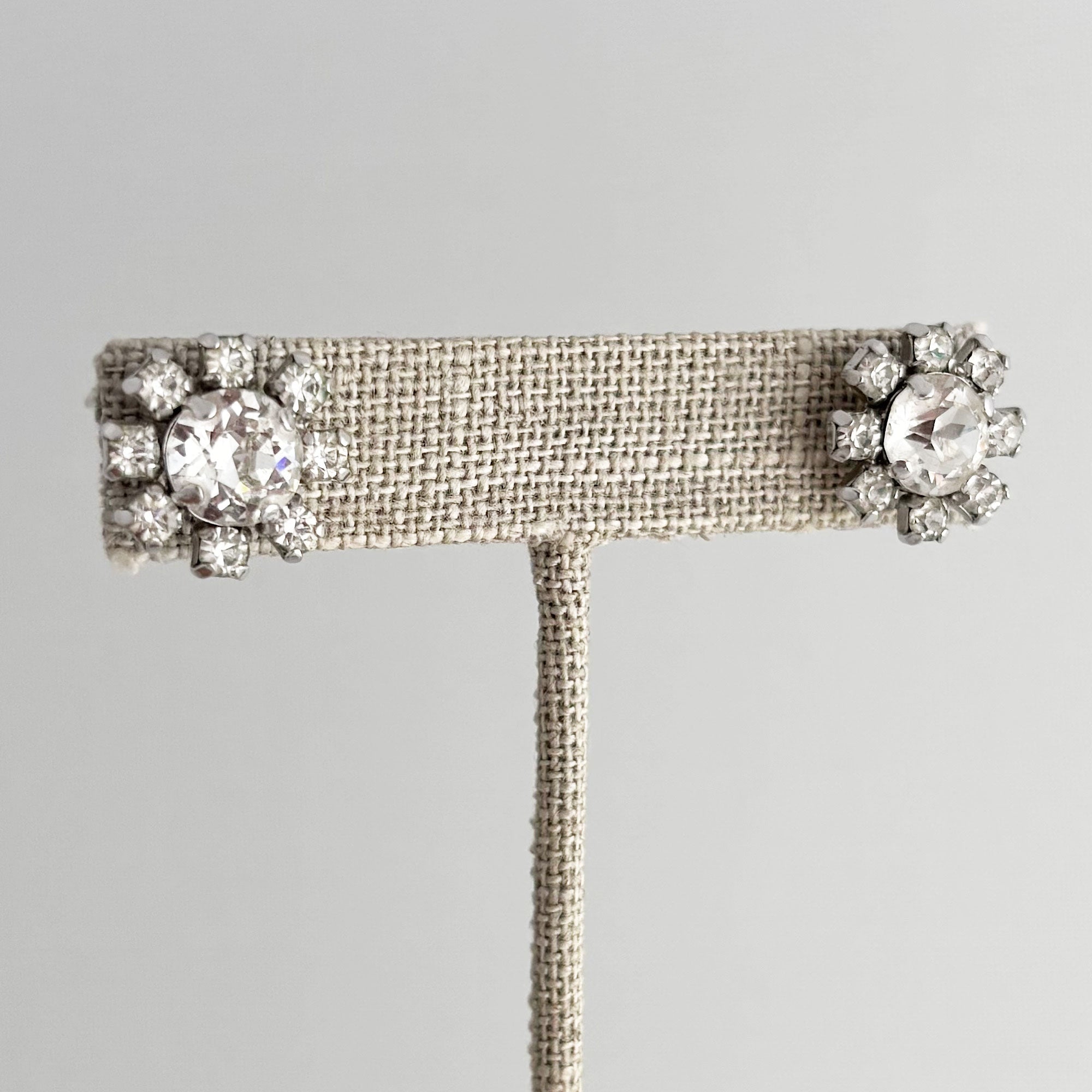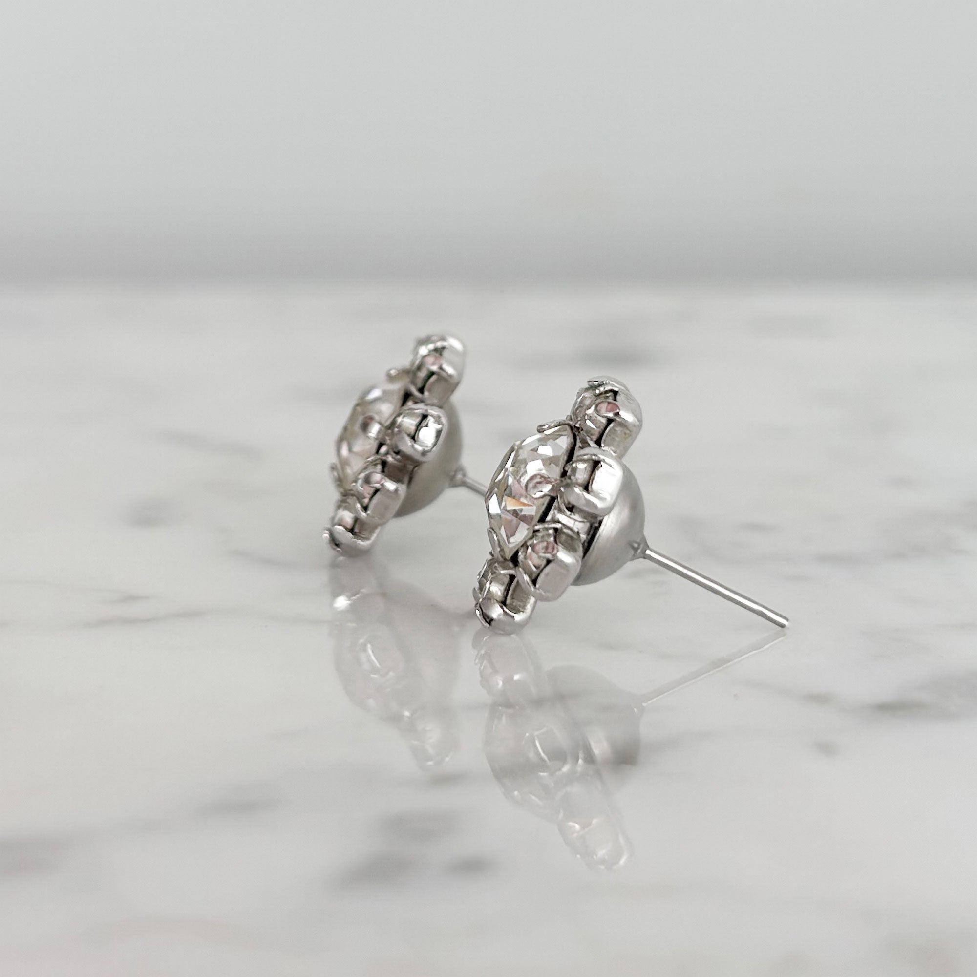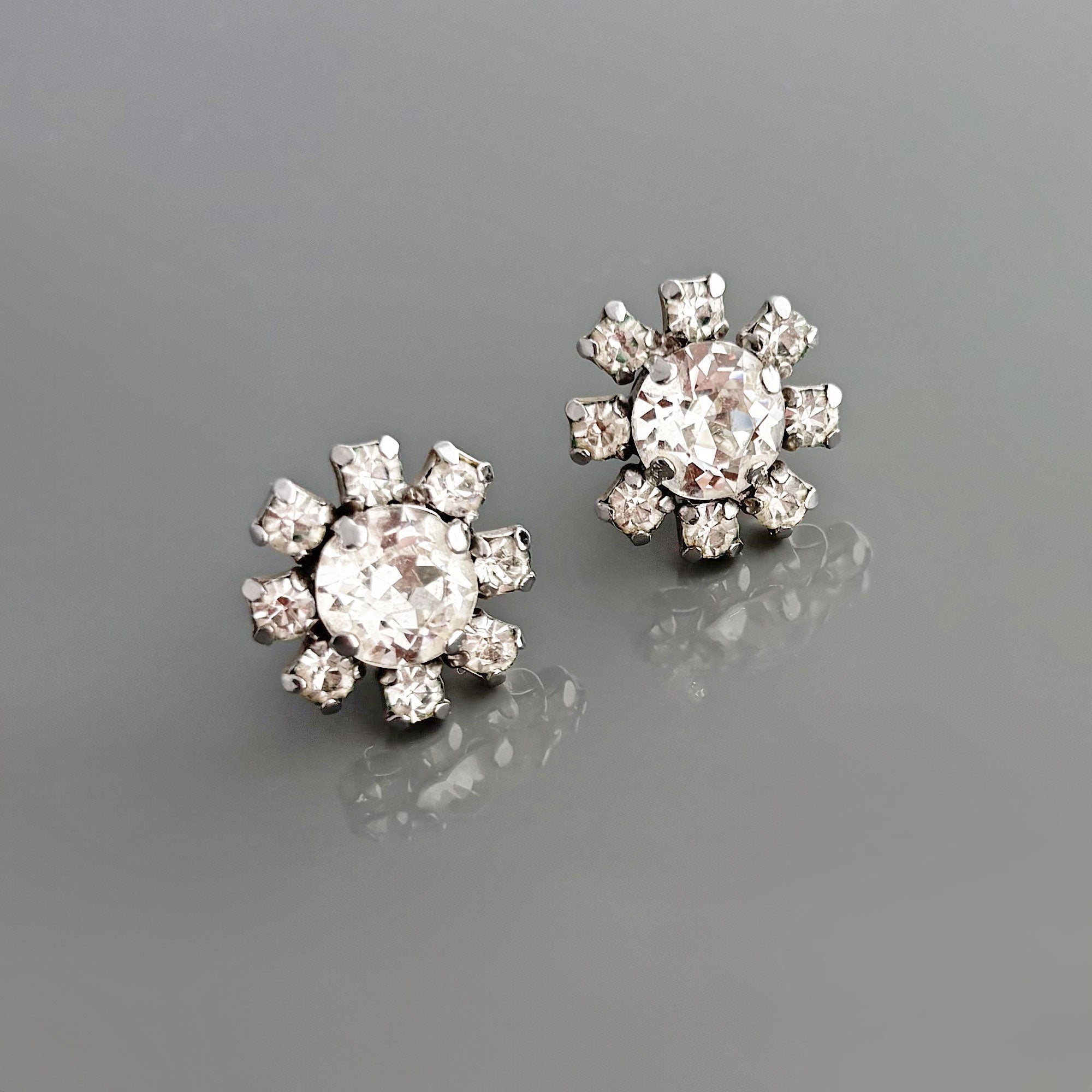 • vintage silver tone floral settings with clear rhinestones