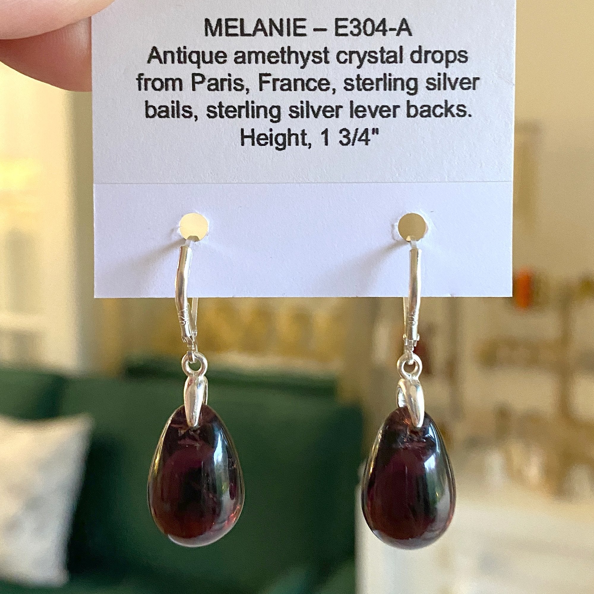 • amethyst crystal drops from an antique early 1900's chandelier sourced in the flea markets of Paris, France
