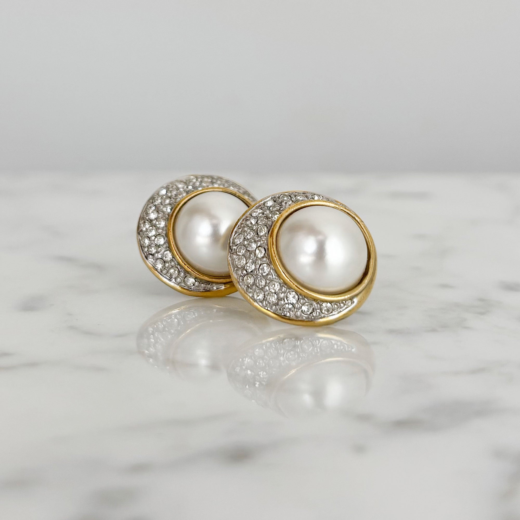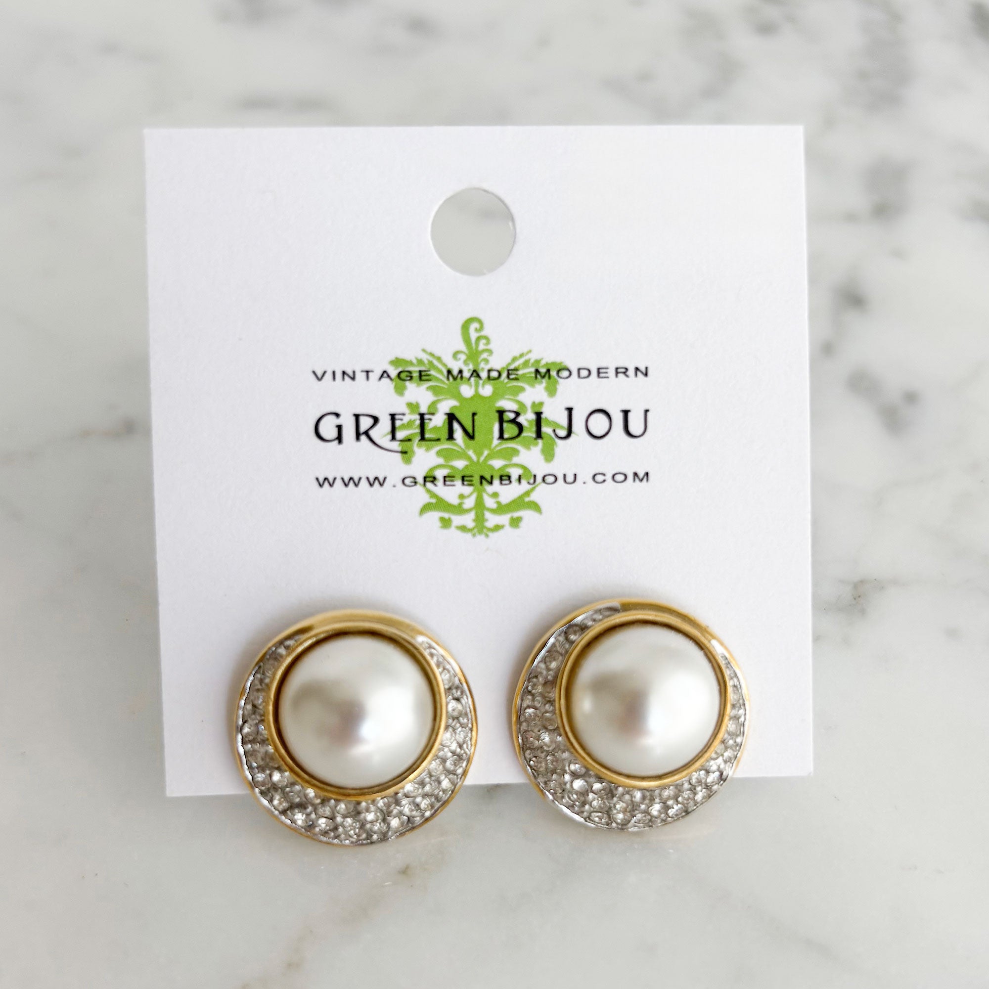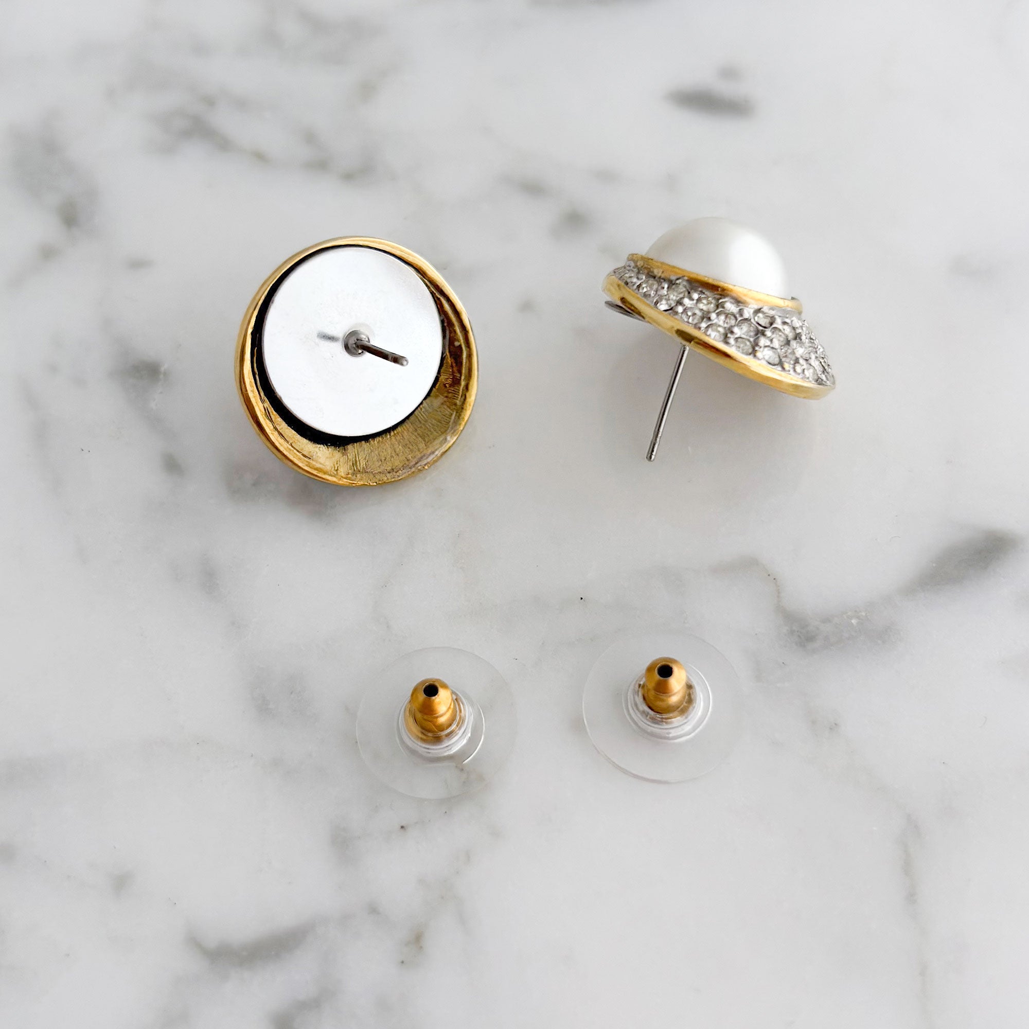 MILLY vintage pavé crystal pearl cabochon gold stud earrings