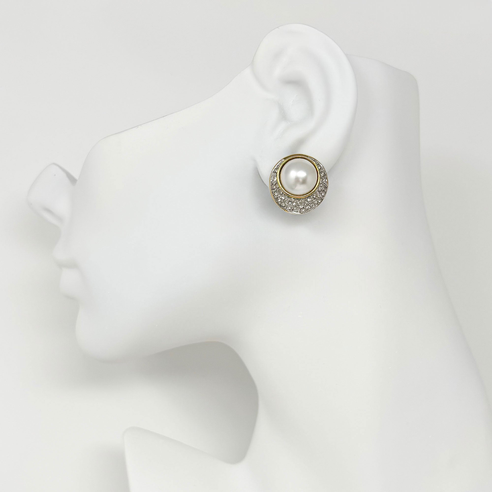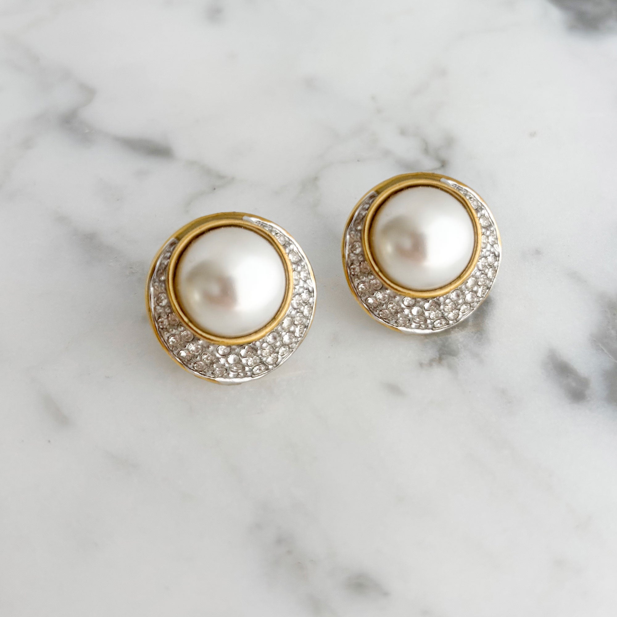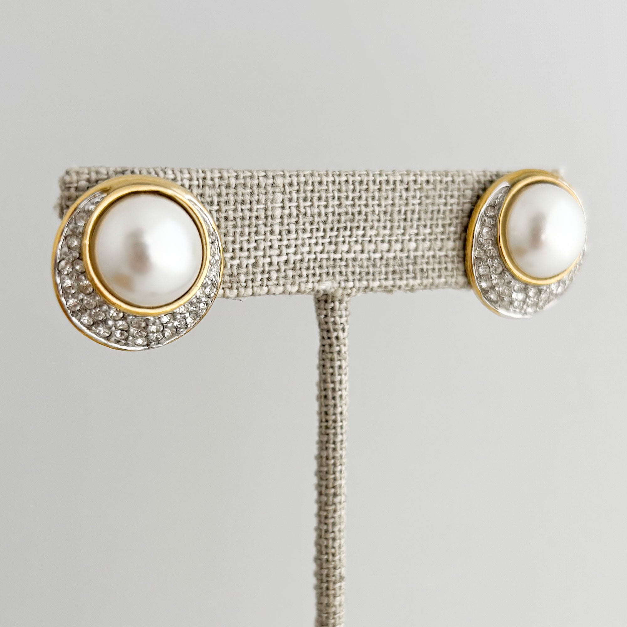 MILLY vintage pavé crystal pearl cabochon gold stud earrings